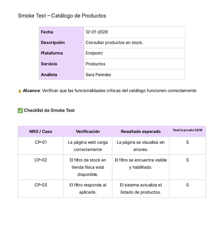 Ejemplos representativos de mi trabajo remoto, mostrando cómo aplico metodologías de QA: